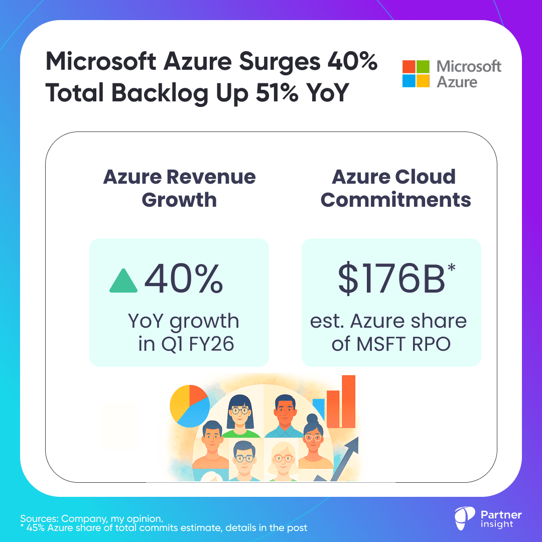 Microsoft delivered a blockbuster Q1 FY26 with Azure growing 40% and total commercial RPO exploding to $392 billion—up 51% year-over-year—while revealing capacity constraints will persist through at least June 2026.