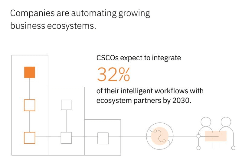 32% of Chief Supply Chain Officers plan to integrate with partners to grow faster and more predictably with insights and automation.