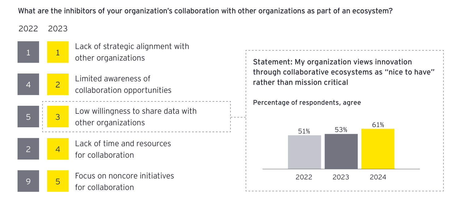 The hurdles? A lack of strategic alignment remains the biggest challenge for collaboration, followed by a low willingness to share data.