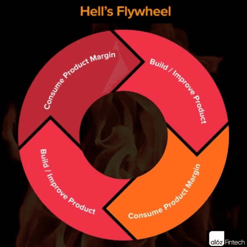A16Z partner Joe Schmidt IV called Hell’s Flywheel a never-ending competitive race of margin creation/expansion and their consumption due to growing CAC (cost of user acquisition).