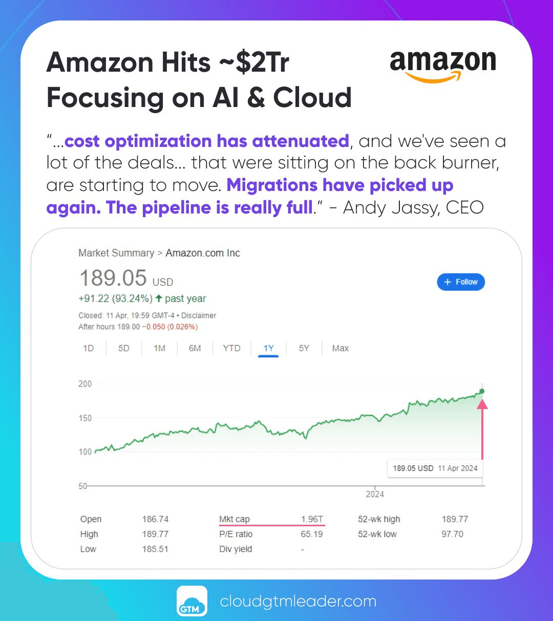 He also underscored the vast potential available in cloud migration: “with a cloud computing business at nearly a $100B revenue run rate, more than 85% of the global IT spend is still on-premises. These businesses will keep shifting online and into the cloud.”
