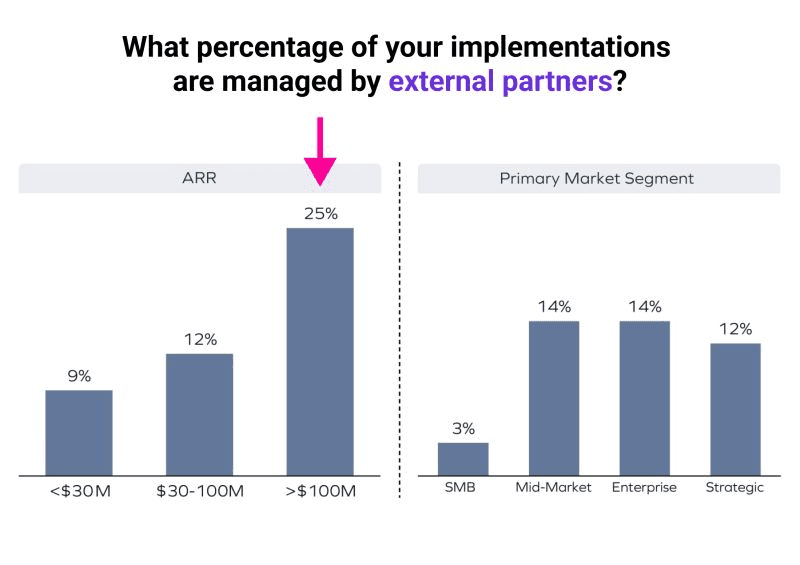Among companies with $100M ARR, 25% use external partners for customer implementations.