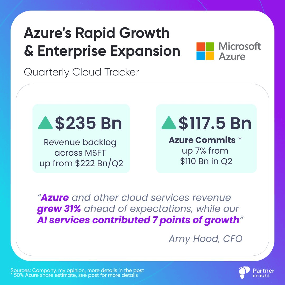 Microsoft Azure commits are now at $117.5 Bn (~50% of $235Bn commits, "related to the commercial portion of revenue". Calculations in my previous posts.)