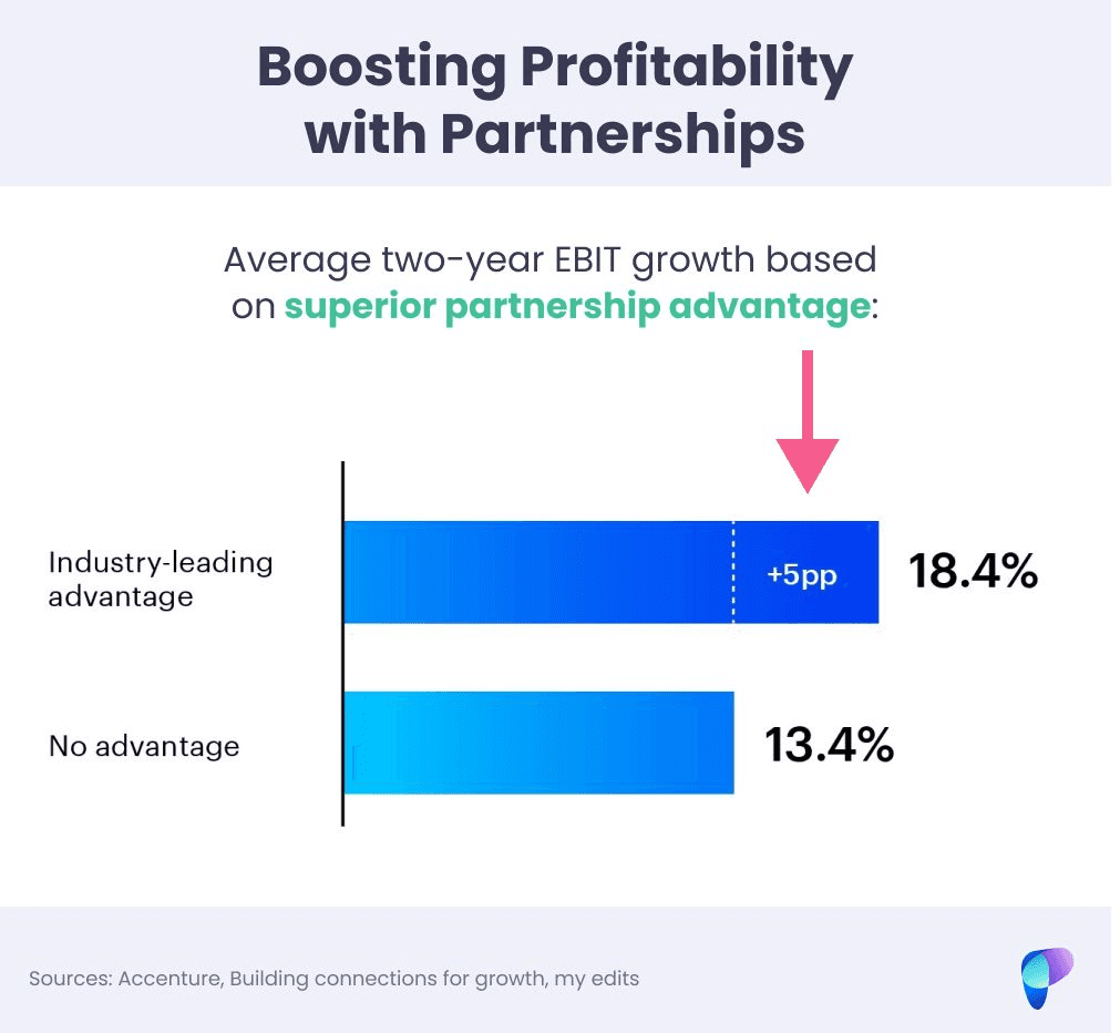 To begin with, partnerships unlock an extra 5% in EBIT growth per year, as per Accenture's findings.