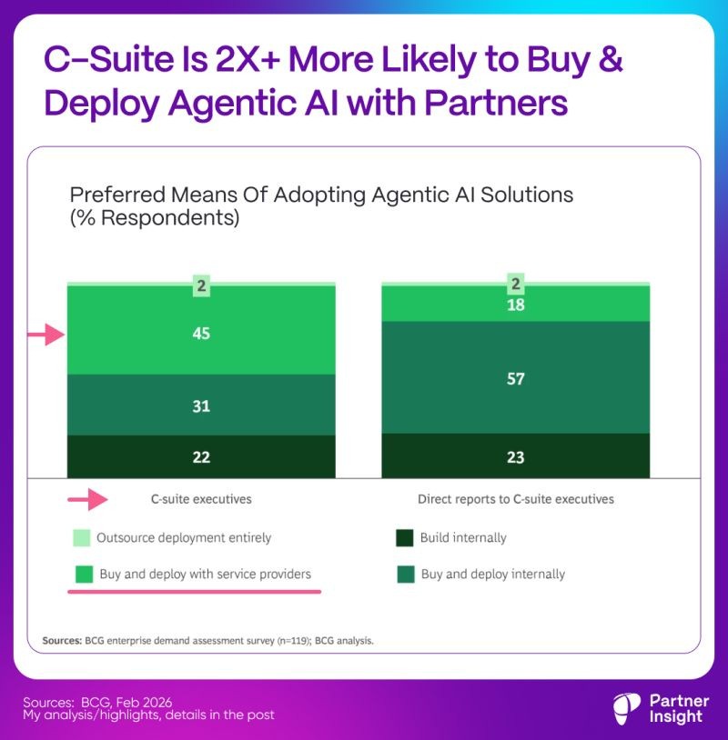 The buyers who matter most — C-suite — are choosing partners over internal builds and are betting on ecosystems. Your sales and marketplace motions should match those executive-level buying patterns