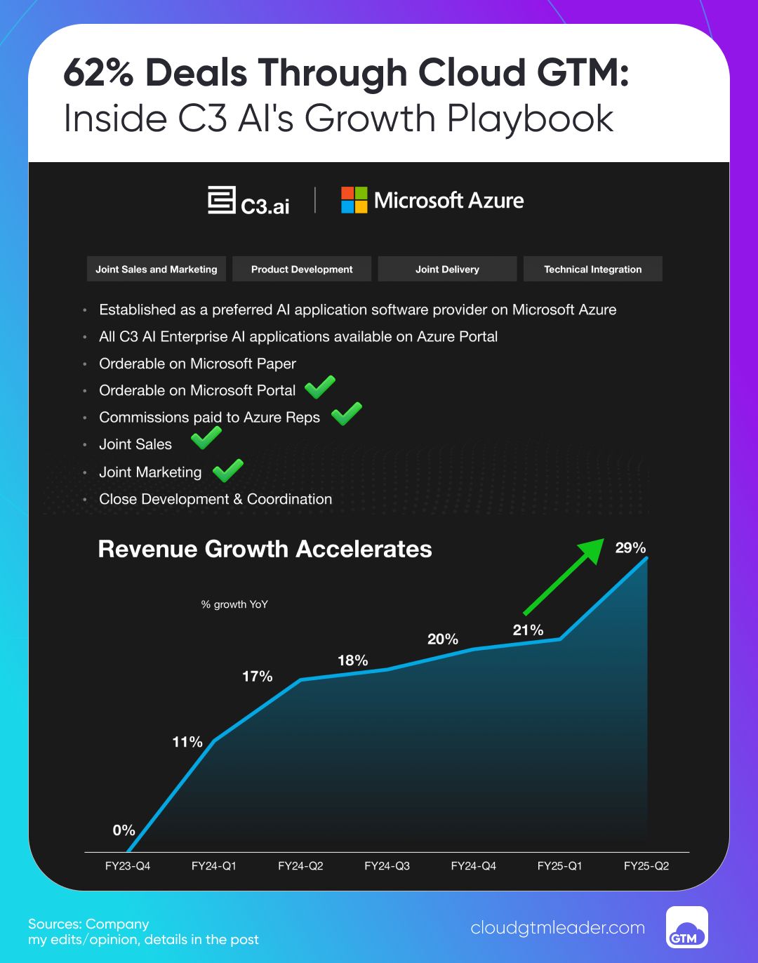 62% of C3 AI agreements last quarter were "closed with or through Google Cloud, AWS, and Azure," stressed Tom Siebel, as C3 AI also won 20 deals with GCP (+180% YoY) and signed a major alliance with Microsoft Azure.