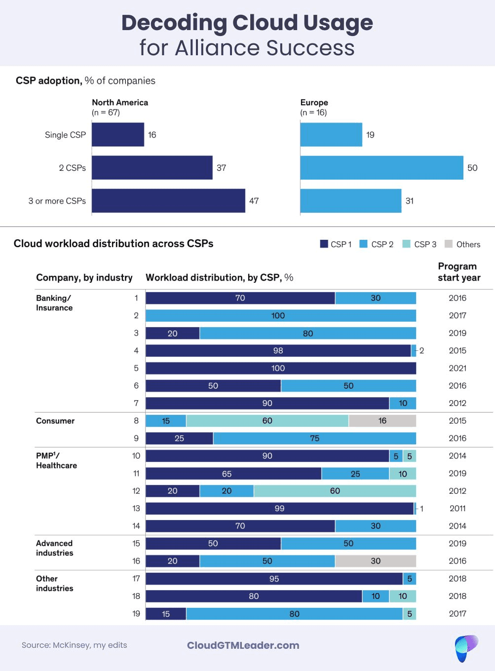 Many companies distribute workloads across CSPs, leveraging varied strengths and to mitigate risks. Yet, CSP 1 emerges as a dominant player, particularly in sectors highlighted above.