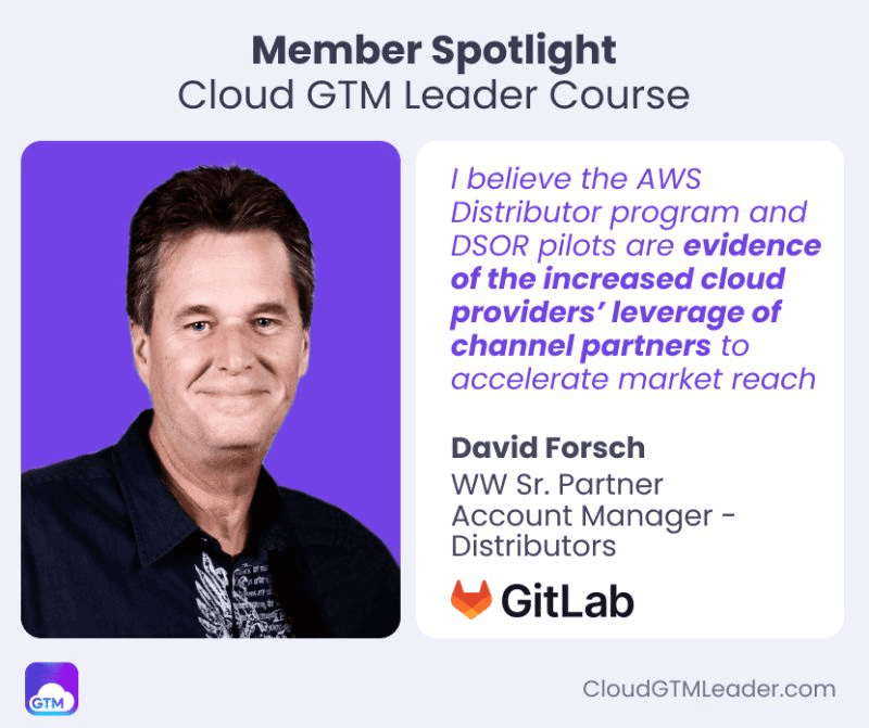 I'm excited to spotlight David Forsch, WW Sr. Partner Account Manager - Distributors at GitLab, an incredibly experienced member of our course. David has shared with us his insights on the growing role of channel partners in cloud marketplaces.