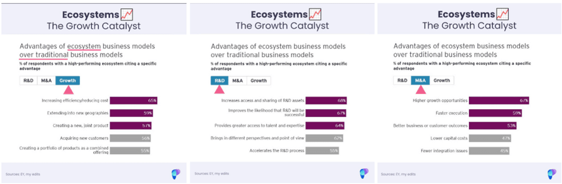 📈Ecosystems boost three key business areas: Growth, R&D, and M&A