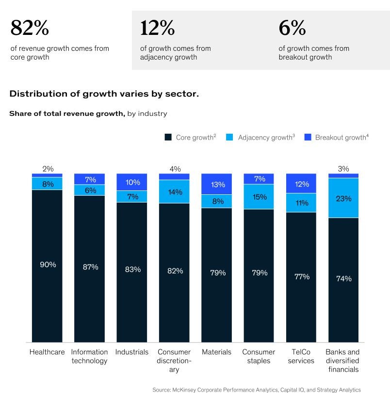 2/3 of new growth is generated by expanding into sub-industries where companies already have a foot in the door and 1/3 is the growth into entirely new sub-industries.
