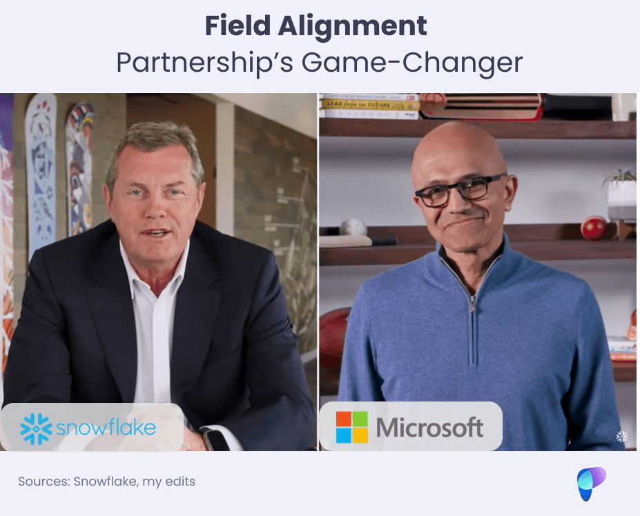🙌 Field alignment isn’t a trivial matter that can be overlooked. Snowflake’s CEO understands its importance so well that he made it a key point when extending their partnership with Microsoft.