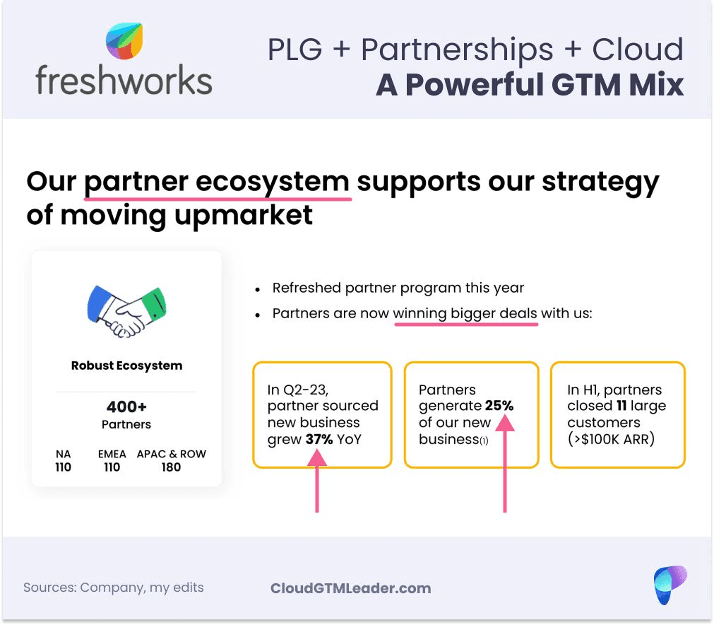 🎯 Freshworks ' transition from a PLG model to experiencing 2X growth rate in partner-sourced ARR (vs direct sales) while also co-selling with AWS, is a prime example. Let's examine it.