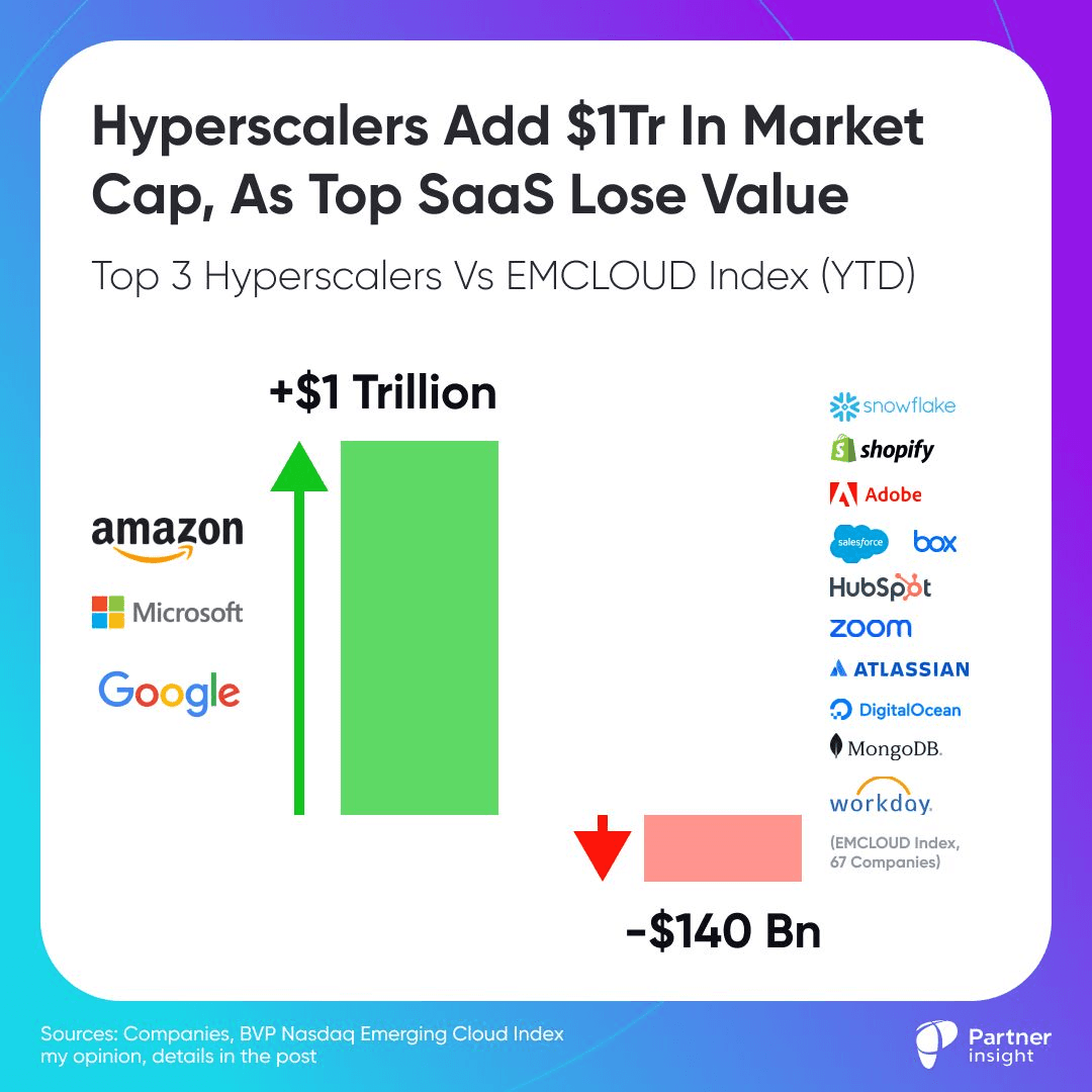 The best way to compare hyperscaler performance with top SaaS companies is using BVP Nasdaq Emerging Cloud Index (EMCLOUD).