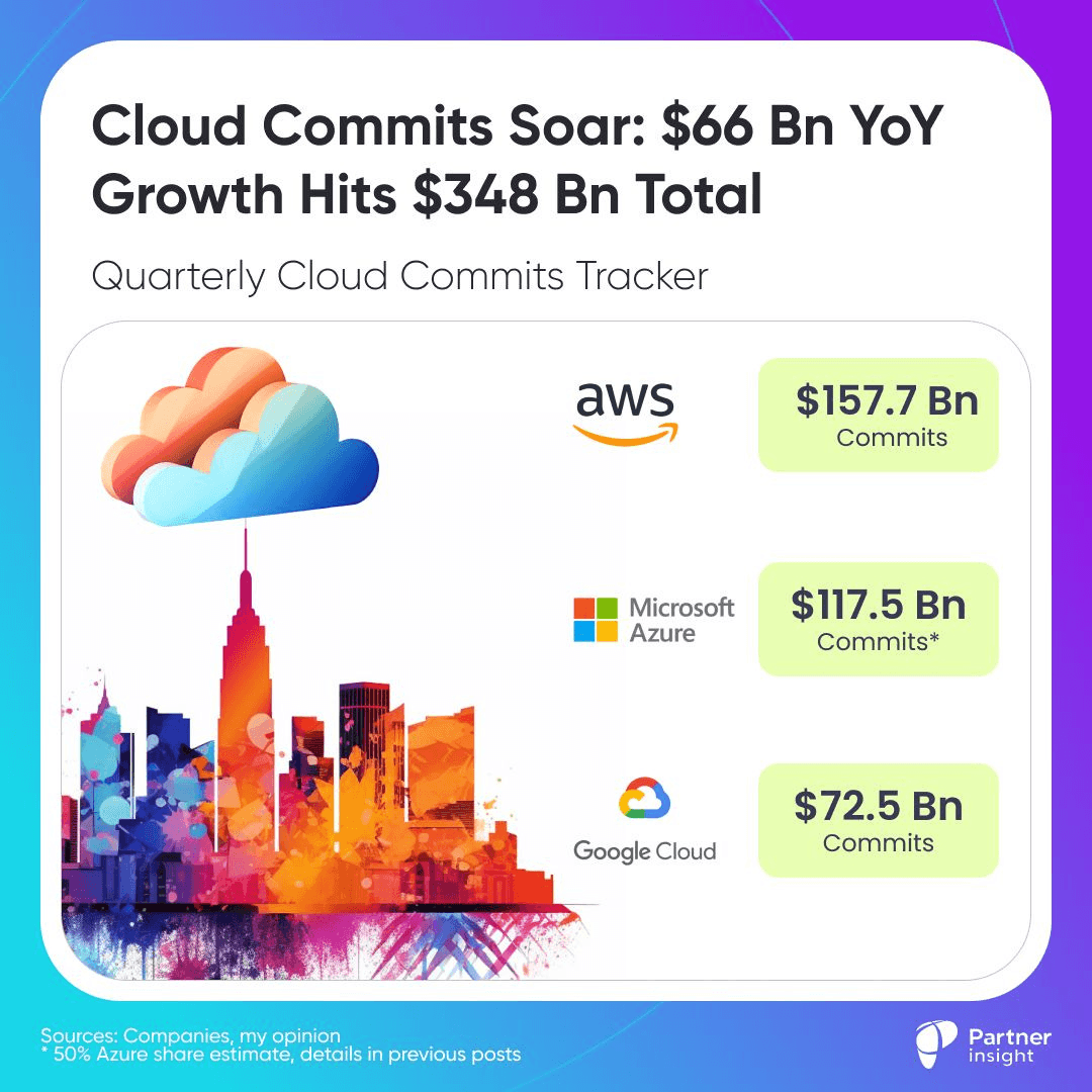 In my recent analysis, hyperscaler cloud commits surged to a staggering $348 Bn last quarter, adding $66Bn in just one year. Numbers tell an insightful story, if we reflect on the last 12 months.
