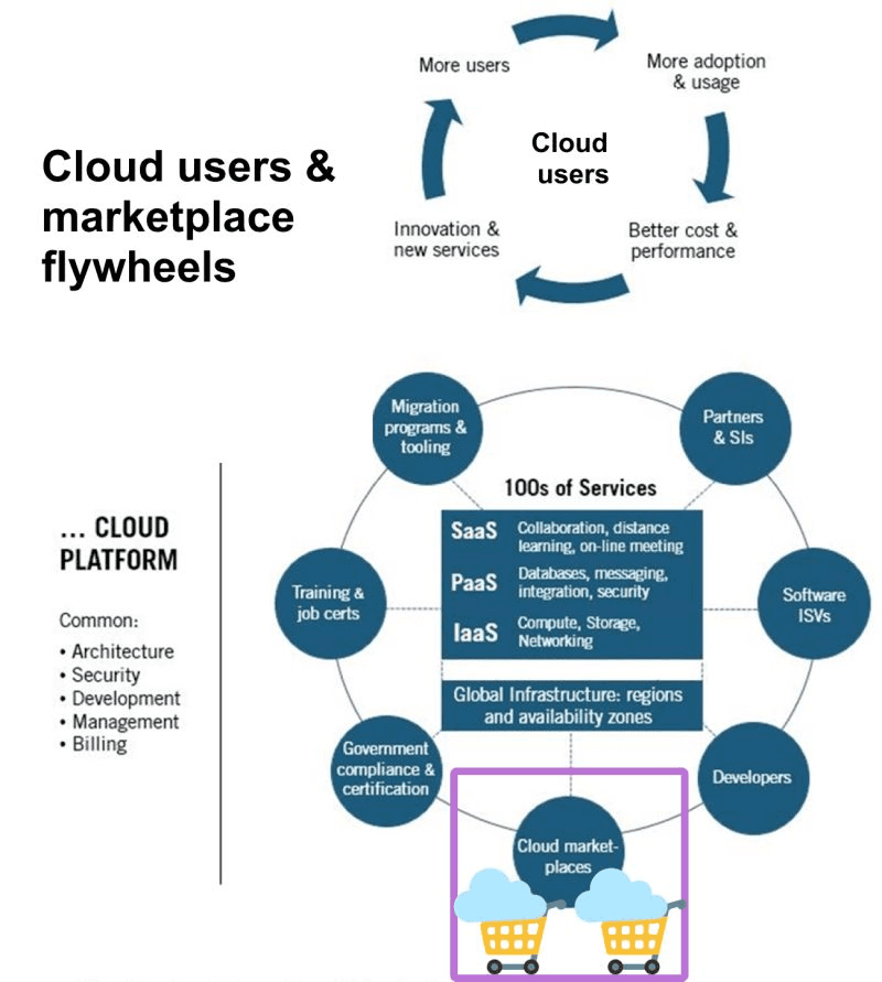 Cloud platforms are focusing on building user and platform flywheels (see the picture).