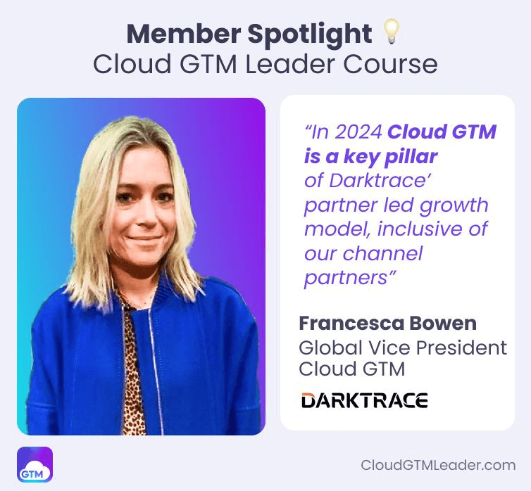 Thrilled to spotlight Francesca Bowen, Global Vice President of Cloud GTM at Darktrace, an outstanding member in our course. Francesca shared with us her insights on 📈 accelerating traction in cloud marketplaces and their future.