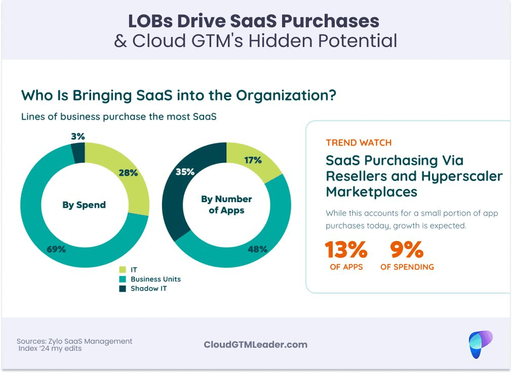 Despite this trend, businesses have incentives to centralize purchasing (using marketplaces?) to combat the challenges of shadow IT, a persisting problem. Another reason is 5X higher risk of cybersecurity incident if companies don’t have centralized visibility.