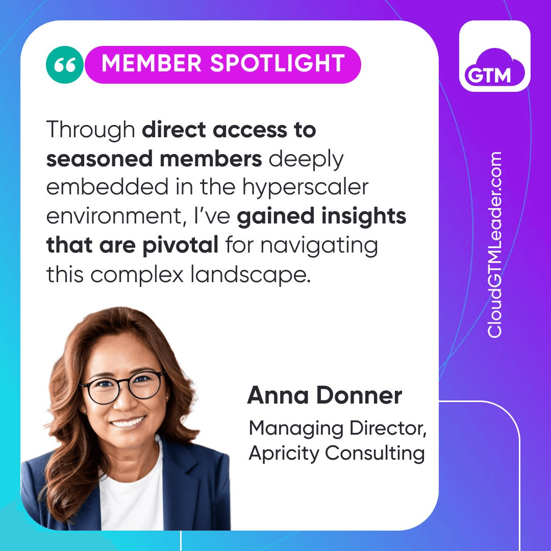 Anna further emphasized the value of direct access to seasoned members deeply embedded in the hyperscaler environment: "These interactions have enriched my understanding and strategic approach, allowing me to better assist my clients in leveraging untapped growth opportunities within the cloud marketplace."
