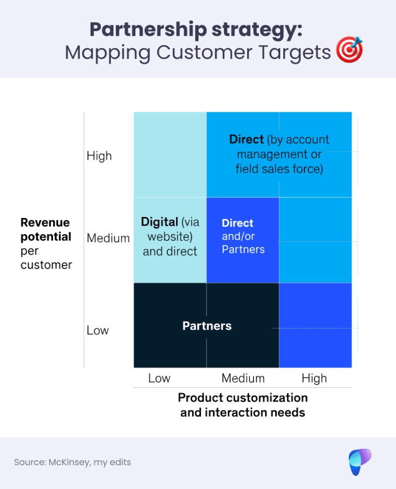 💡 What can define a partner program's success is a decision which types of customers to target directly and which via partners.