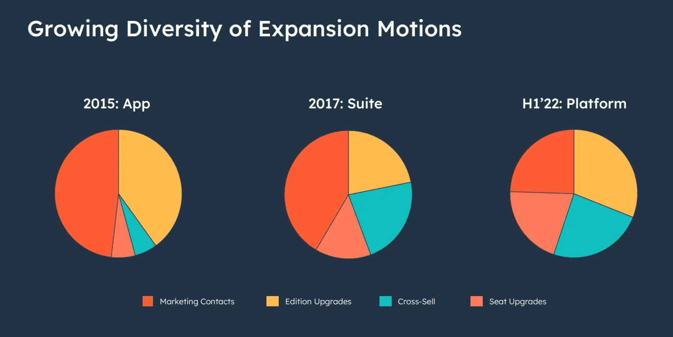 HubSpot’s journey, from a single app in 2015 to a full-fledged platform today, has been nothing short of remarkable. This transformation, which saw HubSpot evolve into a multi-product platform featuring 1300 integrated apps, has significantly increased cross-sell revenue and doubled their customer upgrade rate.