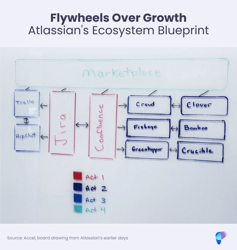 Flywheels that are set in company’s formative years could be more important than growth. Among most important flywheels Accel highlights: