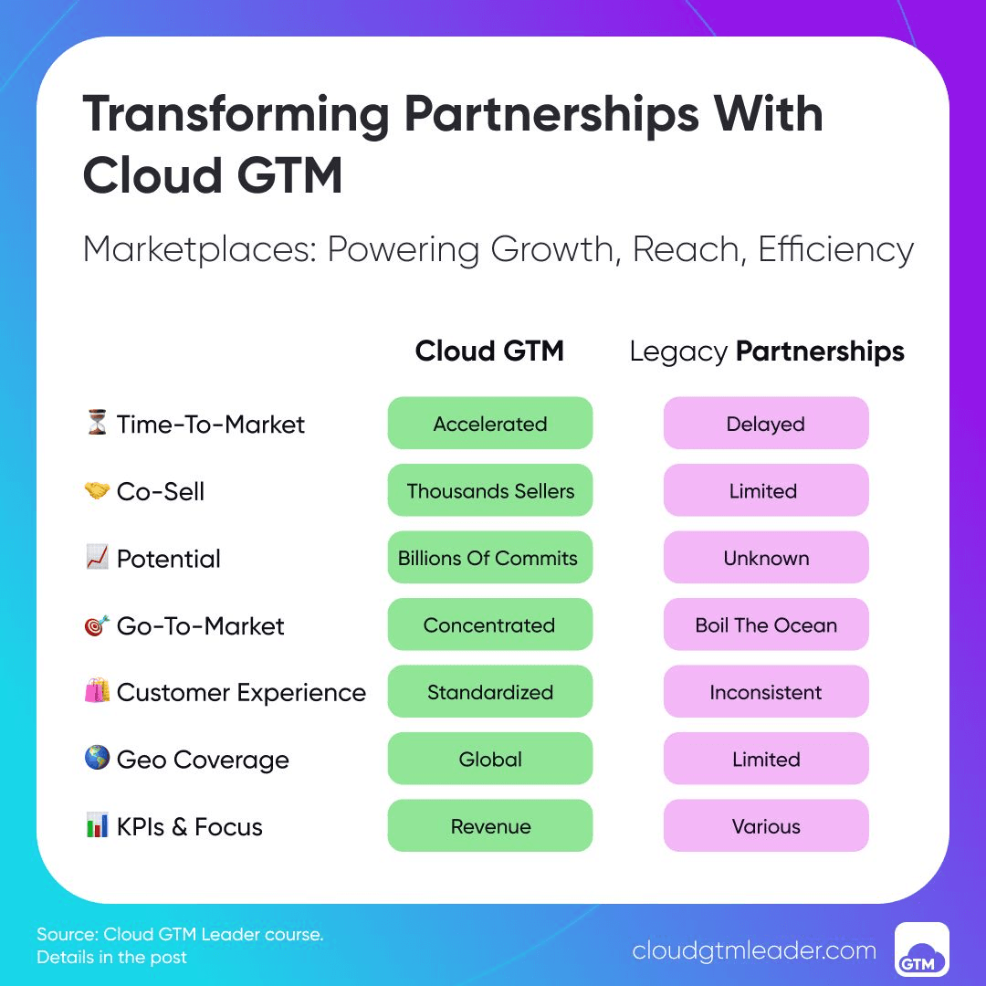 Enter Cloud GTM. With the rise of hyperscalers like Amazon Web Services (AWS), Microsoft Azure, and Google Cloud, software companies now have access to unprecedented scalability and reach. Their cloud marketplaces are rapidly becoming the largest ecosystems where partners can co-sell, co-market, and co-innovate.
