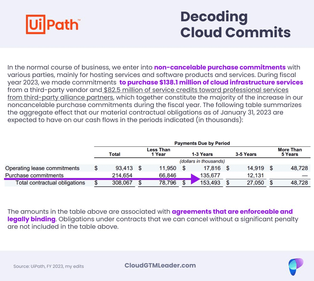 As a tech company, UiPath's cloud spend might naturally be higher than that of some non-tech businesses. However commits equal to 13% of revenue is a significant number that is impossible to ignore even at C-suite or board level.