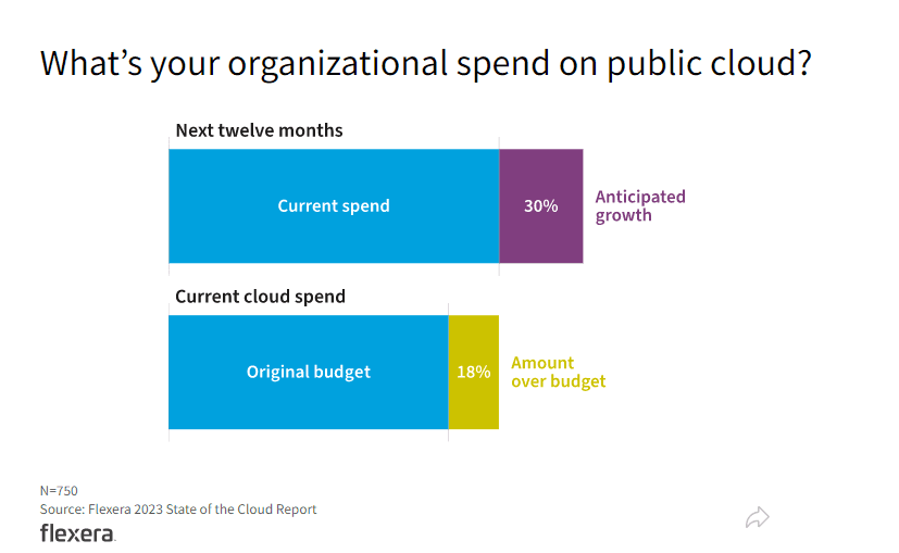 In 2022 public cloud spend was already 18% over budget on average (up from 13% YoY), still 30% of companies expect cloud spend further increase in 2023