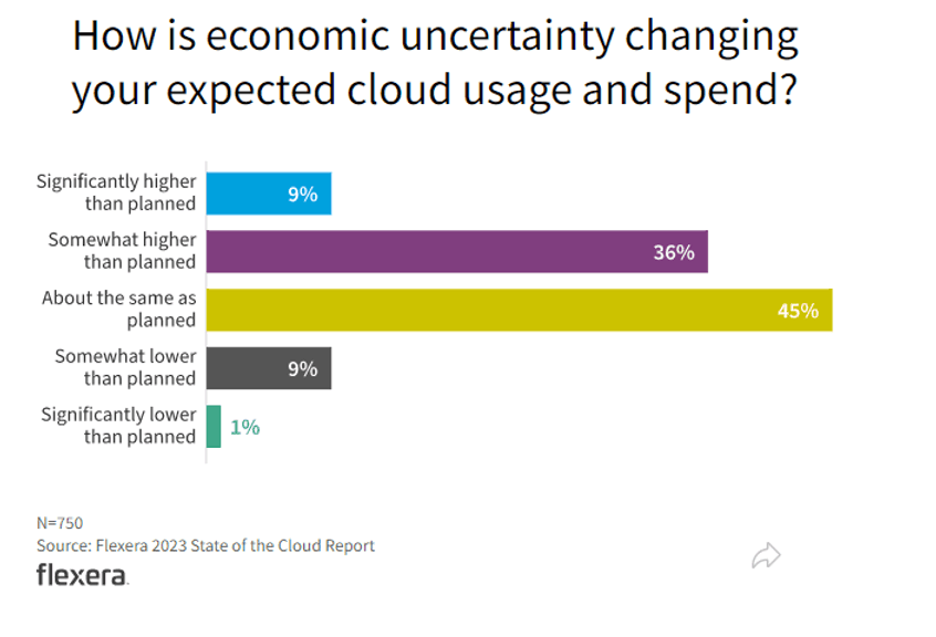 45% companies reported their cloud usage/spend is HIGHER than planned, while another 45% said that their cloud usage/spend remained within the plan.