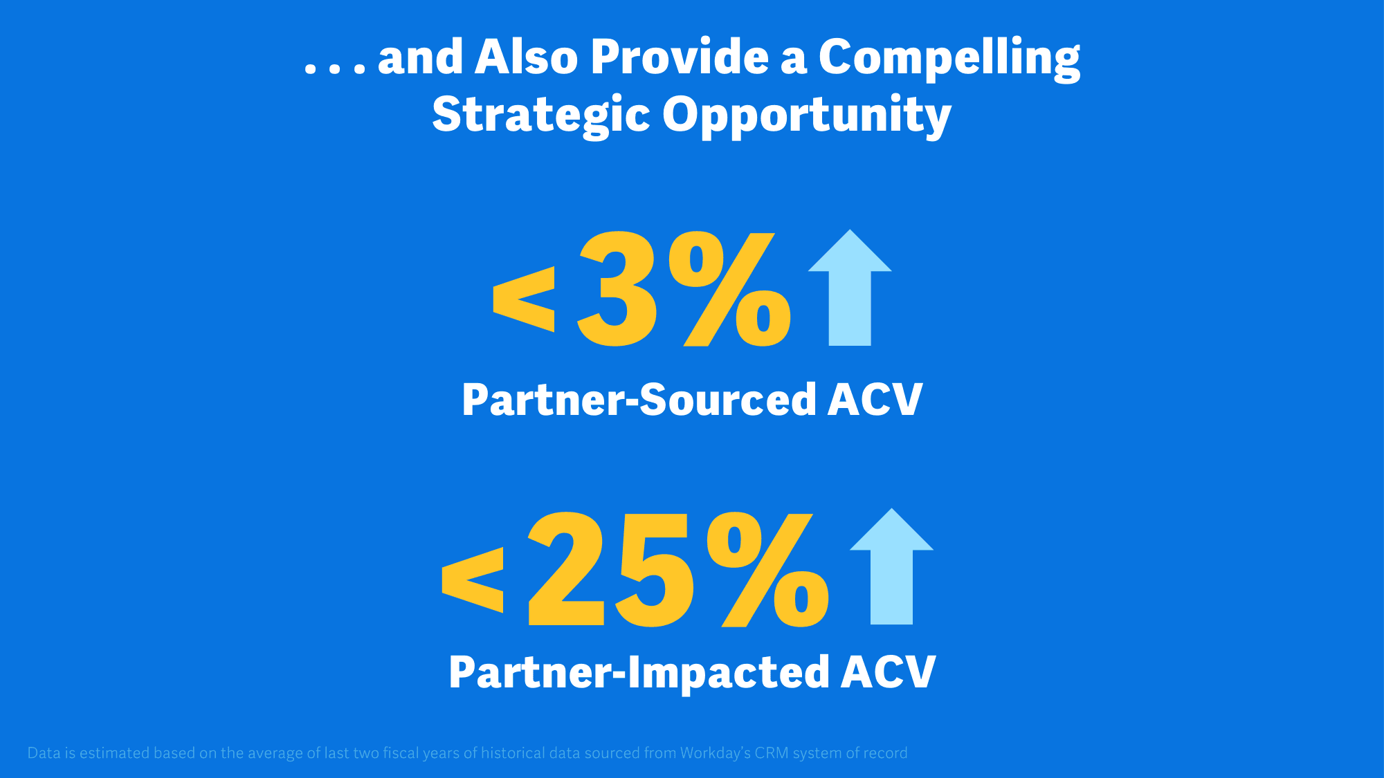 In 2023 Workday recognized the significant untapped potential in joint go-to-market strategies with partners. At that time Workday’s partners sourced less than 3% and influenced less than 25% of their Annual Contract Value (ACV), lagging behind the industry standards for SaaS companies at Workday’s level of maturity.