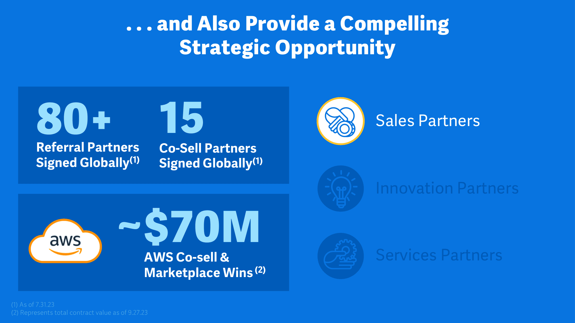 “Usually, we're selling in most cases selling side-by-side, but then taking that all the way through delivery into the project outcome. And we're seeing really good early signs of that. Already with the AWS announcement that we did earlier this year, we've seen $70 million of total contract value created and closed so far with this partnership, and the pipeline is building.” - highlighted Doug Robinson, Workday's Co-President in September.